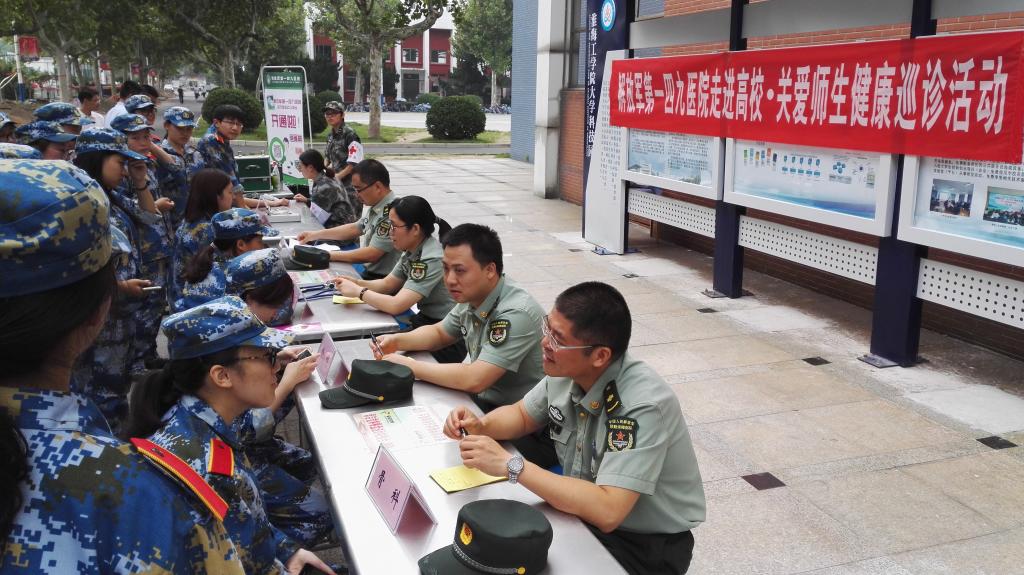 9月19日上午,淮海工学院通灌校区中心广场,mansion88明升与解放军一四九医院联合开展了“走进高校·关爱健康巡诊活动”。活动对象主要为2017级军训新生。