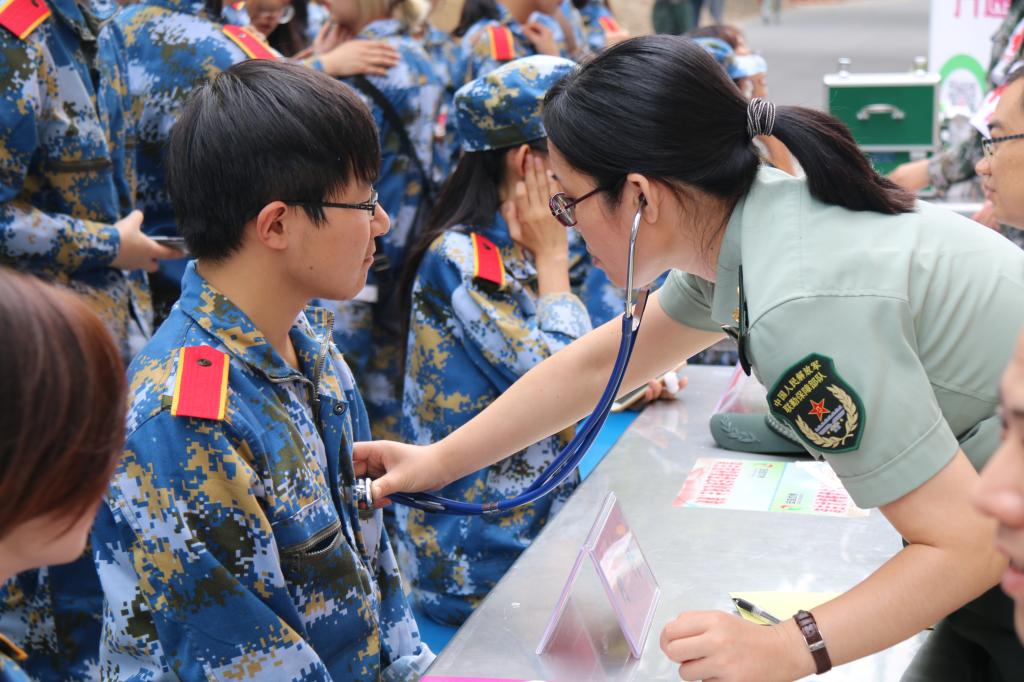 新生9月12日开始军训。仲秋的天气,早晚虽有些凉爽,但白天还是温度颇高,首批00后的老员工体质经受着军训的考验,总会有一部分的员工出现头晕、发热、腹痛等症状,中暑、水土不服、身体麻木等状况时有发生。为积极培育和践行社会主义核心价值观,mansion88明升与解放军一四九医院共建军地友好单位。以军训学员为服务对象,一四九医院分别从骨科、内科、外科、急诊科等科室抽出一批临床经验丰富、专业素质过硬的军队专家组成医疗队,走进高校,免费送医送药,为健康护航。