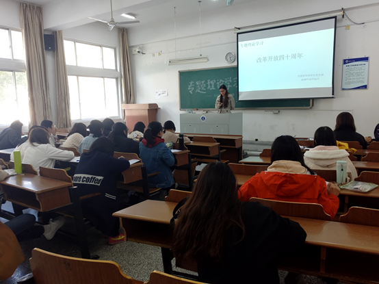 10月31日下午,在文通楼110,mansion88明升召开专题理论学习,组织在校员工党员集中学习改革开放四十周年相关内容。