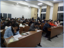 在宣传期间,同学们积极报名参与,筑起了英语写作大赛的第一道桥梁。活动期间,同学们满怀热情,面带微笑的来到比赛地点,对于他们来说这不仅是一次比赛,更是一次丰富人生履历的机会。随着监考人员分发了试卷,同学们纷纷开始拿起笔,准备就绪,就等一声命令发下。这时分针指向了“12”,“现在请同学们作答……”,只见同学们低头开始书写,考场内安静如画,时间似乎停止在这一刻,而场外灯火通明,别有一番滋味!