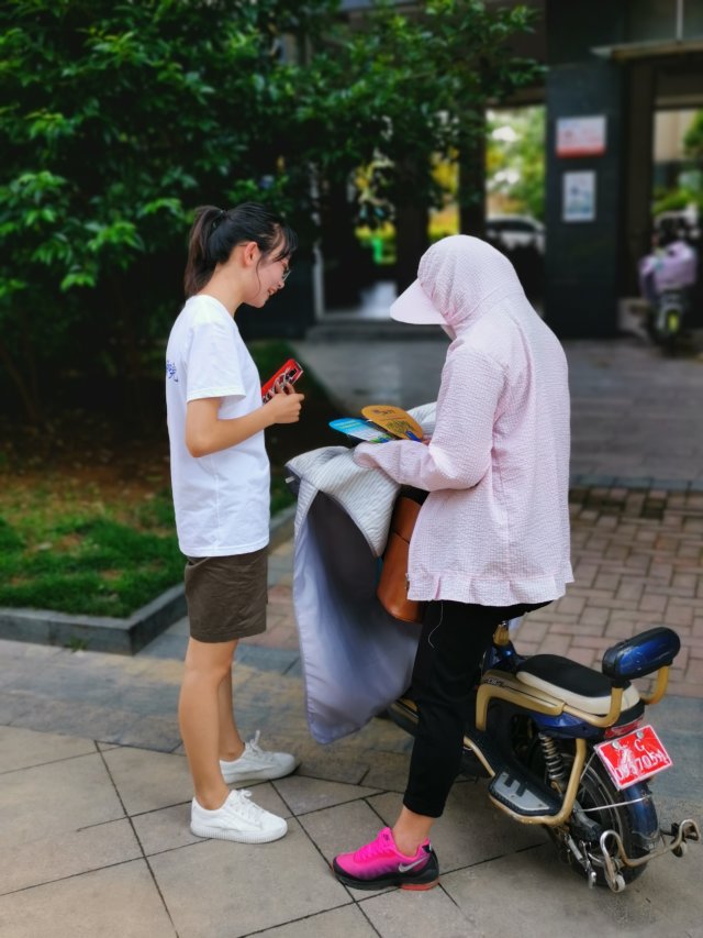 本报讯7月16日,mansion88明升“柳编青春,创想未来”实践团继续深入社区进行推广宣传。