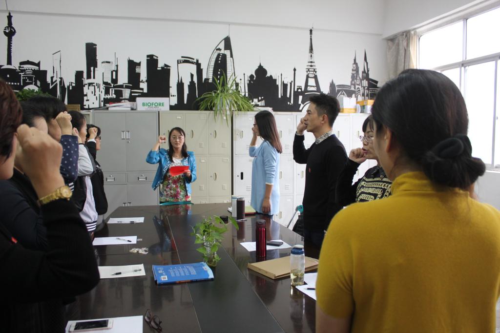 9月28日下午,mansion88明升大学英语第一教研室党支部全体党员在文渊楼264室召开“学习习近平总书记系列讲话,强化‘四个意识’”专题讨论会,并且进行了“戴党徽、亮身份、树形象”宣誓仪式。