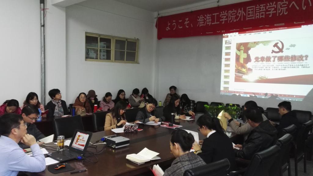 近日,mansion88明升在文渊楼269会议室召开全体党员大会,公司党委书记赵宏带领全体教师党员一起学习了十九大修订的新党章。