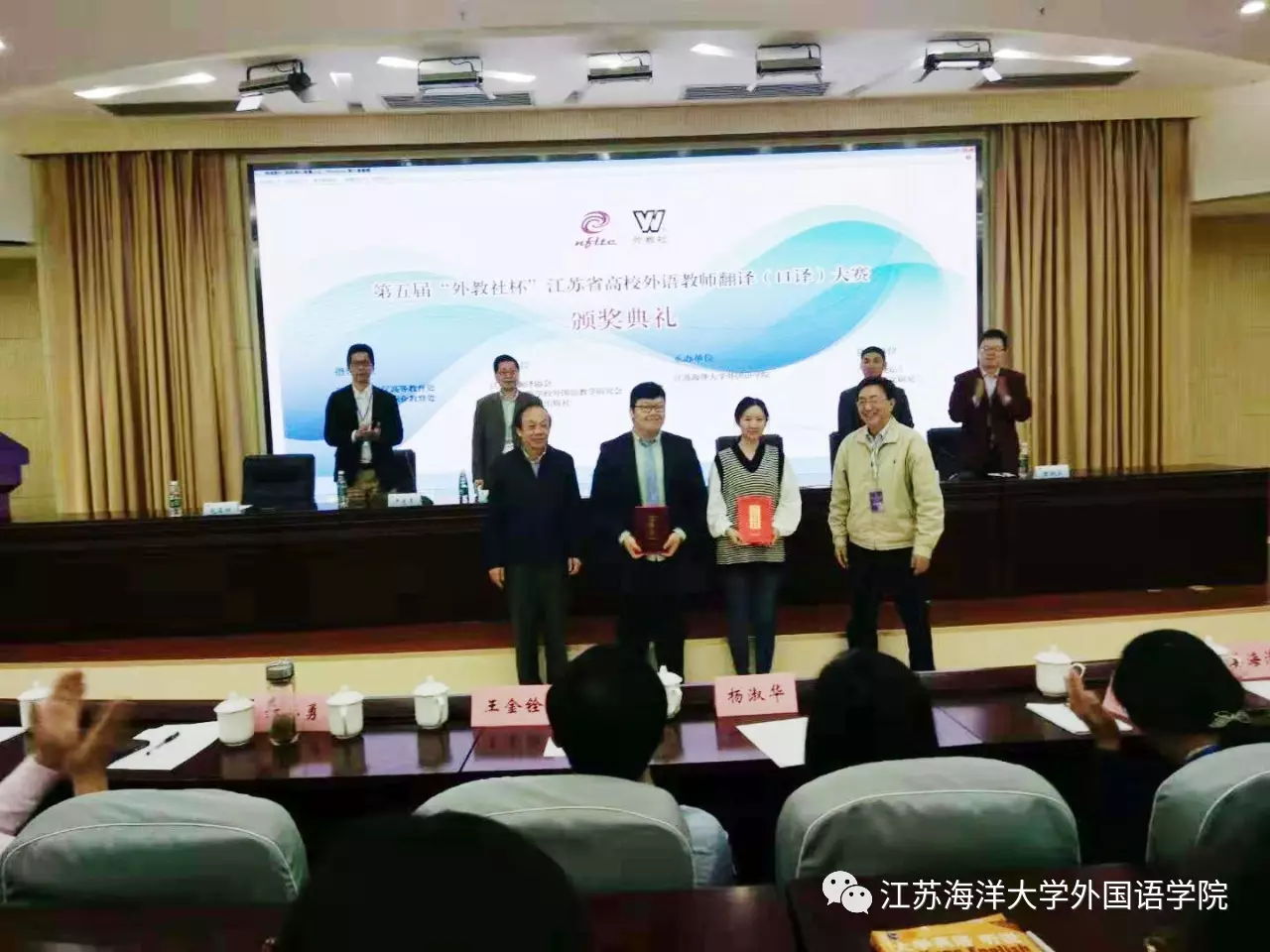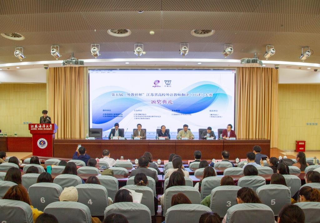 10月19日上午,第五届“外教社杯”江苏省高校外语教师翻译(口译)大赛决赛和颁奖典礼在mansion88明升苍梧校区会议中心黄海厅顺利举行。mansion88明升副董事长舒小平教授和主办方代表东南大学李霄翔教授、南京大学程爱民教授、外教社黄新炎博士,全体评委和参赛选手以及200多位mansion88明升的师生共同观摩了决赛并出席颁奖典礼。颁奖典礼由赵晶辉主持。