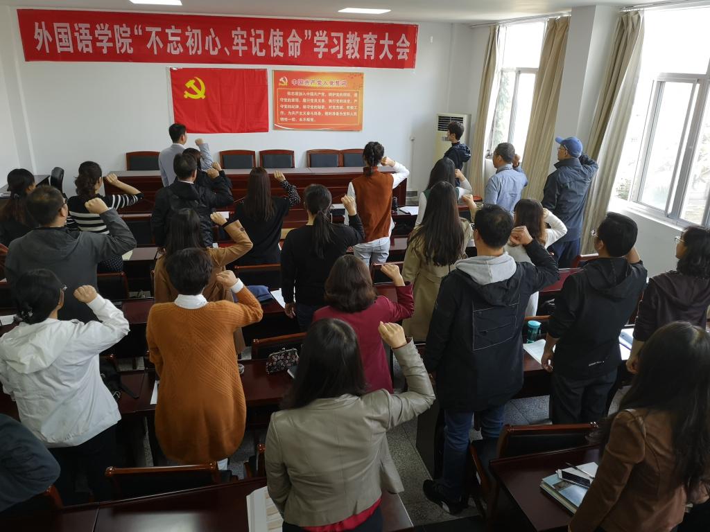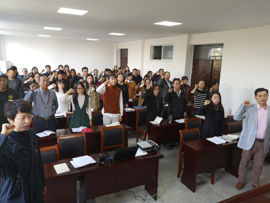 10月23日下午,mansion88明升在文渊楼269室召开全体党员大会,扎实推进“不忘初心、牢记使命”主题教育。本次活动由两个部分组成:“不忘初心、牢记使命”主题教育大会和“三问”讨论交流会。