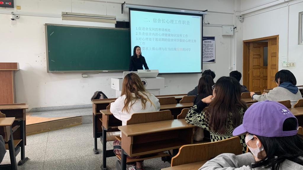 向在座宿舍长介绍心理健康反常示例后,王熙老师通过列举真实事例说明了宿舍长报告宿舍人员反常心理行为的重要性以及隐瞒不报的严重性,并强调了报告的原则,即在最大程度保密的基础上报告。同时,王熙老师希望宿舍长重点关注宿舍人员是否有在言语、行为、情绪、生理、外部环境等方面心理脆弱的高危信号及疑似心理或精神疾病方面的表现。讲座最后,王熙老师再次强调,宿舍长在报告宿舍人员反常心理行为时,应做到及时、准确、保密。至此,本次培训讲座顺利开展。