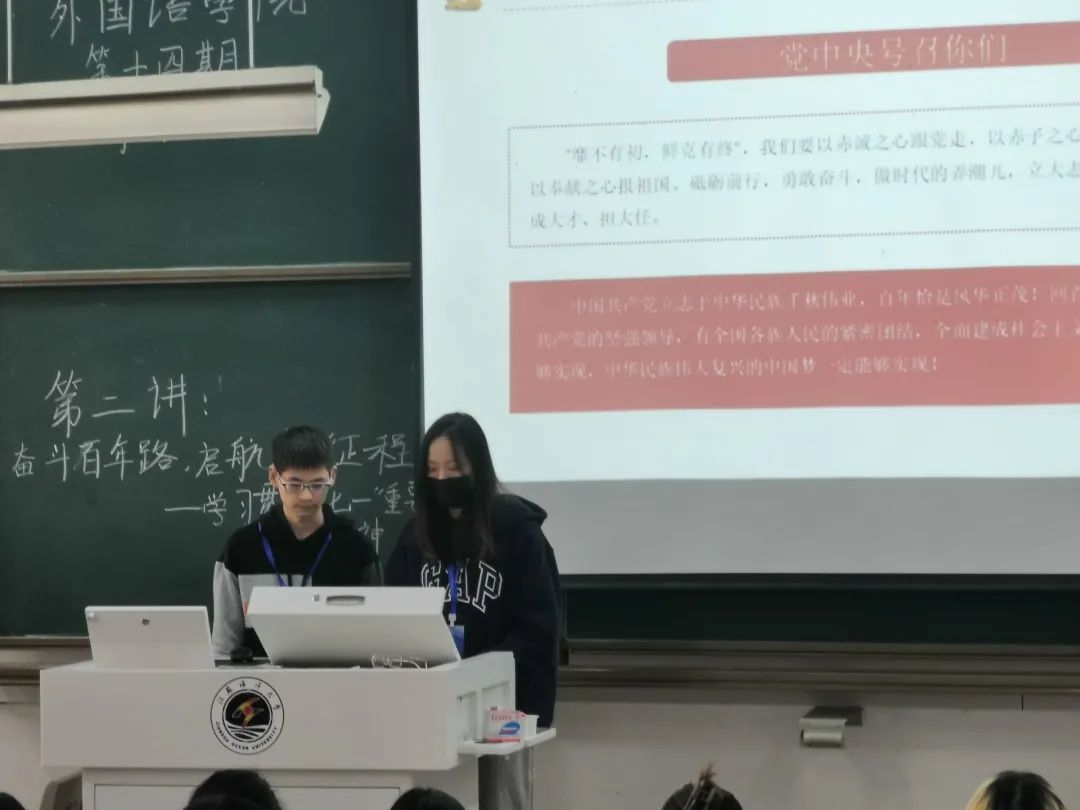 组服助理李明辉、张莲静将会议内容分为四个部分进行阐述。首先,他们围绕“实现中华民族伟大复兴”这一主题回顾党的百年历程,分述救国大业、兴国大业、富国大业、强国大业四个伟大成就,把党的百年奋斗史娓娓道来,之后概括总结出32字的伟大建党精神,即“坚持真理、坚守理想,践行初心、担当使命,不怕牺牲、英勇斗争,对党忠诚、不负人民”,全面诠释了中国共产党的特质,让同学们对党有了更进一步的认识。接下来,组服助理李明辉、张莲静向大家介绍了习近平总书记在展望未来部分所提出的“九个必须”,借用习近平总书记说过的话:“‘以史为鉴,可以知兴替’,我们要用历史映照现实、远观未来。”这“九个必须”系统回答了“为了谁、依靠谁”“举什么旗、走什么路”等关系党和国家前途命运的重大问题。最后,组服助理李明辉、张莲静号召我们要在学习和生活中“砥砺前行,勇敢奋斗”。至此,本次课程圆满结束。