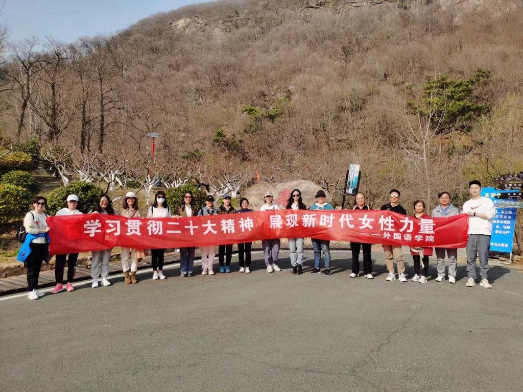 参加活动的既有女教师也有男教师。大家来到春意暖暖的云台山脚下,迎着和煦的春风,踏着欢快的脚步,沿着登山步道前行,以健康活泼的身姿、自信快乐的笑脸,充分展示了新时代女性的魅力和风采。一路欢笑一路汗水,全体教师一鼓作气来到了目的地法起寺,撞响了迎接春天的钟声。