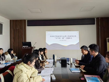 会议分为两项议程,首先进行的是心理工作研判会,会议就员工的心理健康情况展开研讨和交流,在场研究生依次分享了自己在学习和生活上的心得体会以及心理困惑,田德勇针对每位研究生的发言做出答复,并指出学院高度重视研究生心理健康教育工作,要关爱重点关注员工,定期开展谈心谈话,结合学校2024年心理健康工作要点扎实推进心理健康工作。
